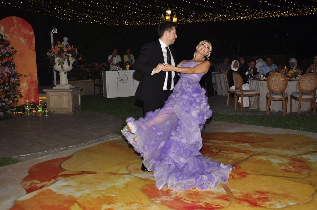 Genç nişanlılar gecenin açılış dansını alkışlar arasında yaptı.