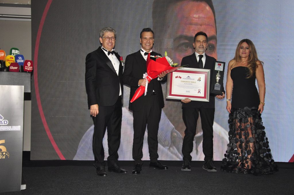 Gecede Nasuh Mahruki ödülünü BUMİAD Başkanı Mustafa Gümüş’ün elinden aldı.