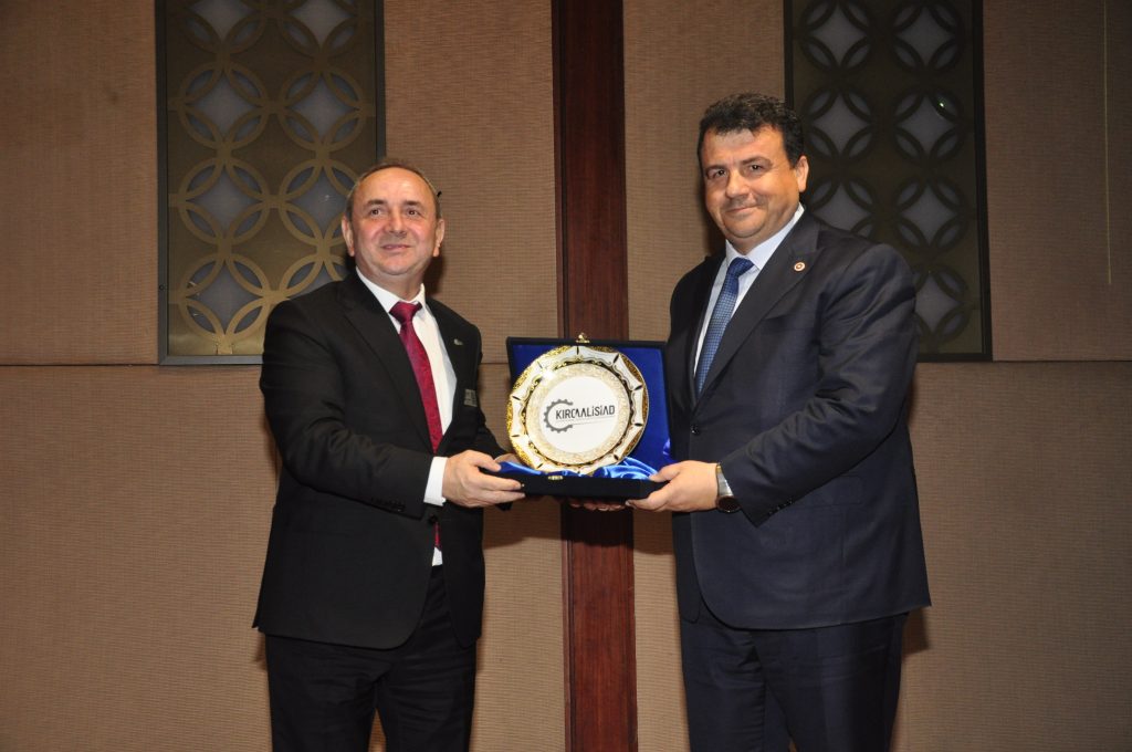 KIRCAALİSİAD’ın gecesine katılan ve kısa bir konuşma yapan CHP Bursa Milletveki Hasan Öztürk’e plaketini KIRCAALİSİAD Başkanı Osman Güler verdi.