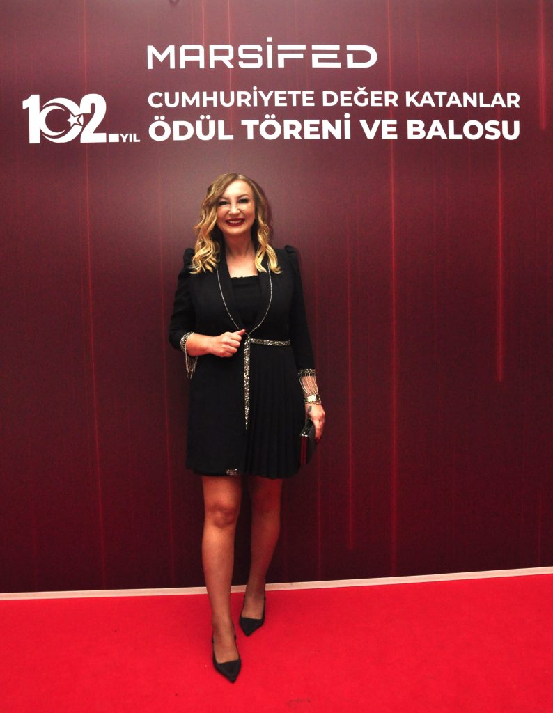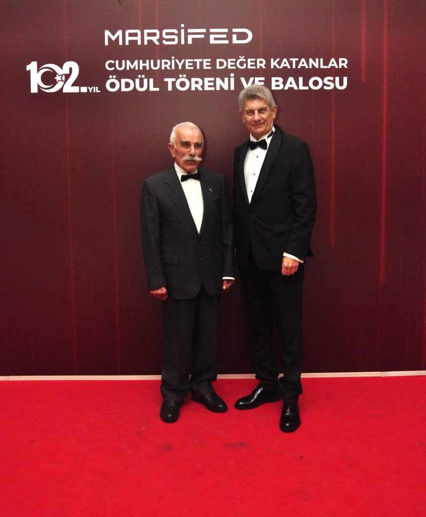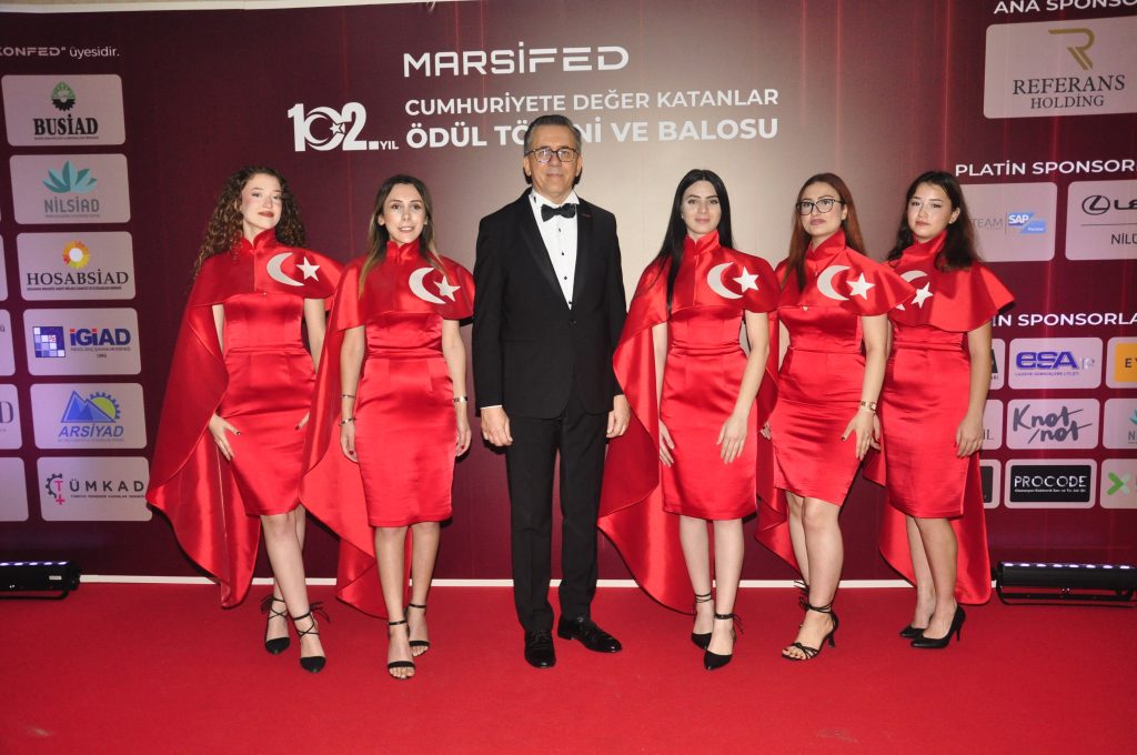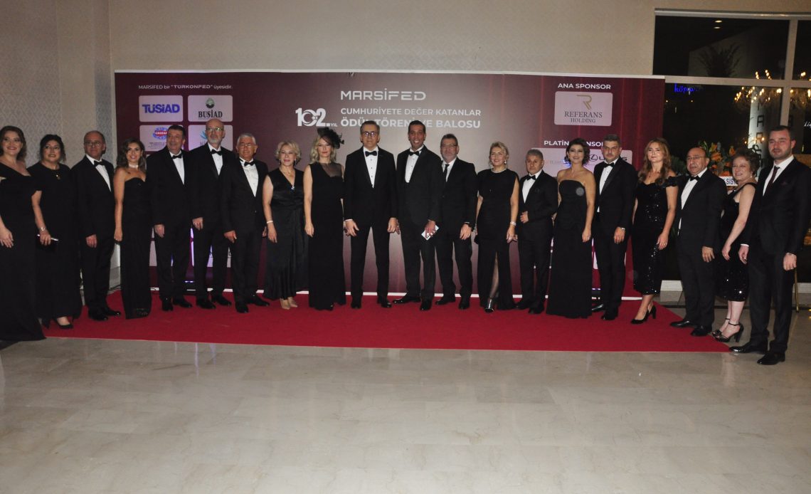 Gösteri ve sunumlardan sonra başlayan Cumhuriyete Değer Katanlar Ödül Töreni’nde İş dünyasında üretim, sürdürülebilirlik, sosyal sorumluluk ve inovasyon alanlarında fark yaratan kişi ve kurumlar ödüllerini MARSİFED yöneticilerinin elinden aldı.