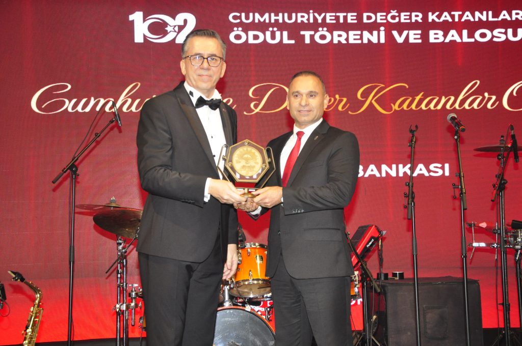 Cumhuriyete Değer Katanlar Ödülü’ne bu yıl Türkiye İş Bankası layık görüldü. Ödül, MARSİFED Yönetim Kurulu Başkanı Osman Akın tarafından Bursa Müdürü Maksut Özel’e takdim edildi.