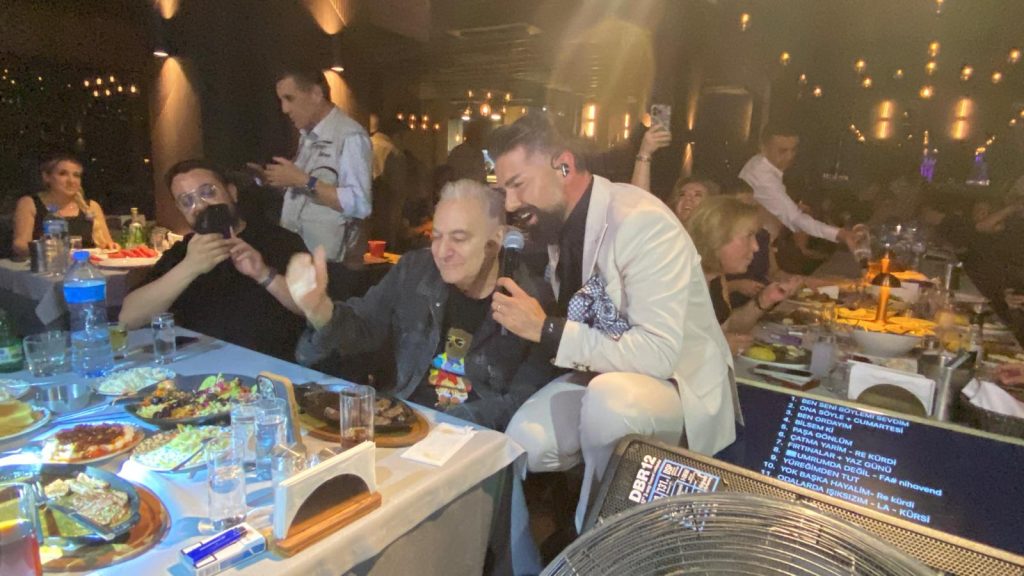 Mehmet Çevik’i dinlemeye gelen Mehmet Ali Erbil ve Serkan Arslan Mehmet Çevik”in seslendirdiği tüm şarkılara eşlik ettiler,